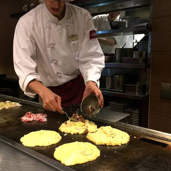 千房是大阪知名的大阪烧店,其实原来也有吃过不少其他店的,里面的蔬菜比例实在太多了,表面看起来秀色可餐,实际却不好吃。千房是在大阪2日Pass券里面包含一个9折券,在京桥京阪商场里找来吃的。虽然比一般的大阪烧贵了20%左右。 这里一个约65-70元。普通店的就50多元。但是酱汁给的很多,里面还有很多鱿鱼块、肉以及虾仁食材。这么一比,高下立判,多花点儿钱还是值得的。乘坐阪急电车、京阪只要不是特急的车次,都会路过这里。直接从天桥上5楼出口处,挨着一个吉野家就是,位置很好找。店内几乎闻不到油烟味,有简体中文配图的菜单,可谓大便利我们国人游客点餐。大阪烧都是当面做的,默认款会加1倍的日式咖喱汁,如果想味道浓一些,就可以申请多加酱汁。一份大约5分钟就做好了,可以请厨师对半或者1/4这样切块,比较好咬。菜丝+肉+虾仁才是多层次的口感,味道很好。所以觉得其他店菜太多不好下咽,建议来这里尝试。配一杯札幌啤酒280日元起,很大一杯哦,正好可以缓解大阪烧略咸的口感。其他菜品还有炖锅,主要是蔬菜+蘑菇这样的组合,卖出了荤菜火锅的价格真心不低,就没有点了。