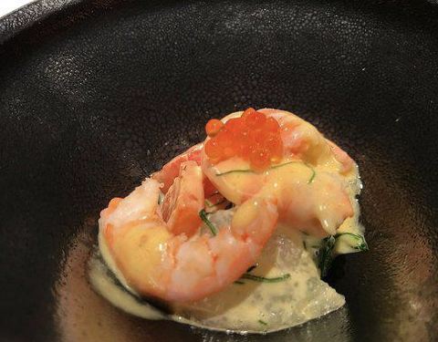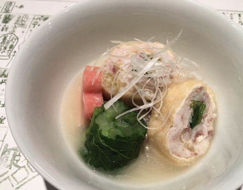 鳢鱼出汁配烧鳢鱼,汤叶包和斑节虾的夏日椀物(鱧出汁コンソメ 焼目鱧·湯葉包み車海老)