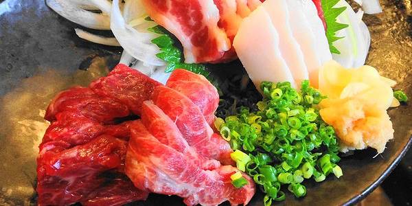 马肉低脂低卡洛里,却又富含蛋白质以及矿物质,在熊本最负盛名。这里的店员都是去熊本专门研习过马肉料理的,不仅有生马肉切片,还有创意马肉料理,微微炙烧过的马肉搭配伊贺糙米饭,简直是人间美味。