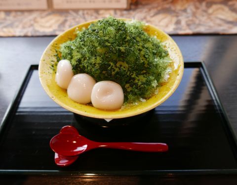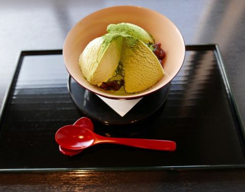 和菓子是自家制作的,只有在这里吃得到,抹茶冰激凌加红豆年糕(ぜんざい)也是人气推荐