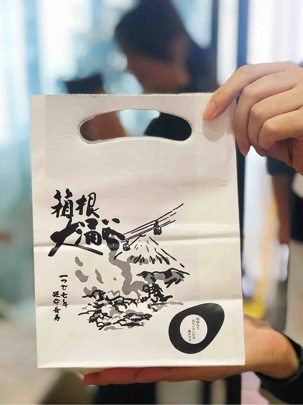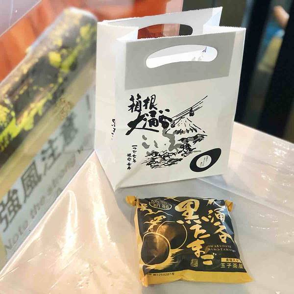 大涌谷是箱根地区非常著名的观光景点,是大约40万年前箱根火山活动的所形成的火山口遗迹,这里空气里到处弥漫着硫化氢臭鸡蛋的味道,是非常特别的地貌。 大涌谷的黑鸡蛋很有名,鸡蛋用温泉蒸煮,蛋壳变黑,黑鸡蛋的名字也由此而来。日本有个传说,吃一只黑鸡蛋可以延年益寿7年,当然,这是一个美好的传说~ 玉子茶屋里的鸡蛋一袋500日元,里面有5只鸡蛋,随袋附赠一袋盐。鸡蛋热腾腾的时候超级香,撒点盐很好吃,毕竟吃一个可以延7年寿,必须得多吃呀!店内还贴心地设置了可以站着剥鸡蛋的小桌子,方便大家趁热吃。 玉子茶屋里还有很多特产,譬如黑面膜,黑面包干,黑玉子巧克力等,买了唐辛子炸饼(一种辣味调料)和黑面包干,面包干甜甜脆脆非常好吃,唐辛子炸饼微辣,开了一包瞬间就停不下来直接见底了(笑)她们家的巧克力冰淇淋也相当人气,这次去晚了没有买到,有点小遗憾。