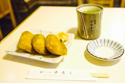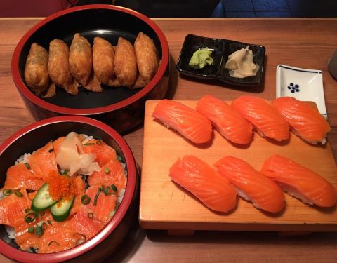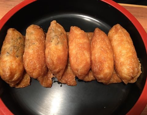 这家是以稻荷寿司(いなり寿司)出名的寿司店,稻荷寿司是一种以入味豆皮包裹米饭制成的寿司,是一种日本的传统料理,据说日本的狐仙(稻荷)很喜欢吃这种寿司。 这家店早上9点就开了,我们第一组进去,老板正在做店内准备工作。 点了稻荷寿司和三文鱼鮪鱼拼盘寿司 【稻荷寿司】是用油豆腐皮放在锅中加入各种佐料收汁做成的,吃口略感油腻,寿司偏甜,6个中3个是普通寿司,3个是包芝麻的,芝麻非常香。这是一种比较传统的寿司,个人觉得日本老年人可能更爱吃一些,稍微有些油腻,如果你是个想尝尝各式传统寿司的吃货,不妨来一份。 【三文鱼鮪鱼拼盘寿司】三文鱼有着漂亮的纹路,不肥腻又有弹性,也很新鲜!他们家的味噌汁非常好喝,不同于超市或者其他店那种含很多盐分吊鲜的感觉,他们家很清淡喝了不口干,但味道却又不寡淡,唇齿留香让人忍不住想再来一碗。 后来问起店主为什么别人家的寿司店都12点开门,他们家9点就开了,店主笑笑说因为稻荷寿司太受欢迎,很多人早上来想打包带走,所以就把时间调整到了早上,希望更多人能吃到他们的寿司,相当贴心。 路过的话,不要错过他们家传统的稻荷寿司,感受一下这样的传统文化。
