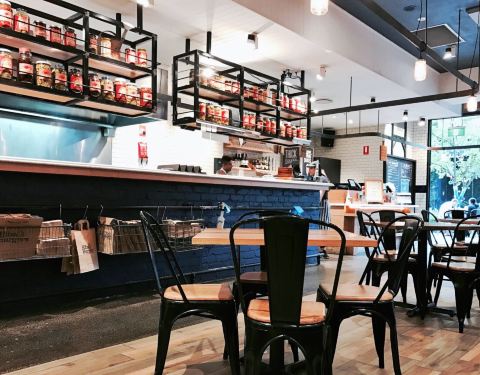 这家餐厅在悉尼开设了多家分店,每家生意都非常好。主要提供汉堡和烤肋排。汉堡内的肉饼都纯手工压制,使用无激素的纯牛肉或鸡肉制作。而烤肋排则在慢火上烤制8小时,香料完全浸入肉内,鲜外焦里嫩,味道鲜美。