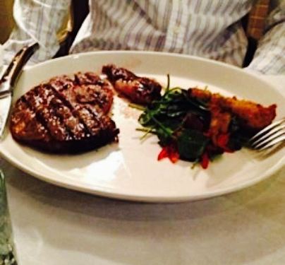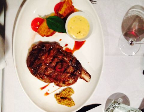 牛排是这里一道很经典的食物。我也是很喜欢吃这里的牛排的。非常完美,而且熟度刚刚好,口感极佳。还会有很多的酱料,非常美味。配上这里的葡萄酒真的是很棒的。服务员都是很专业的。