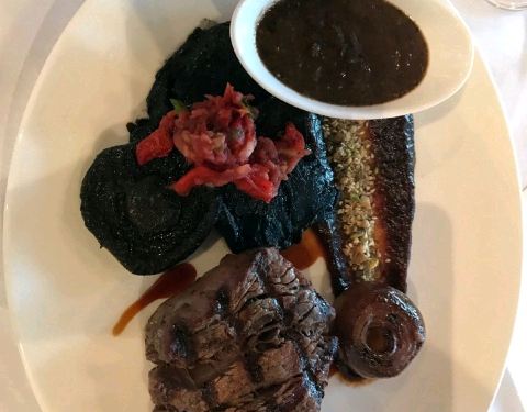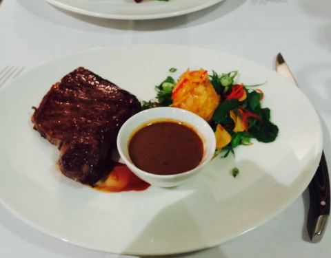 - 非常完美,而且熟度刚刚好,口感极佳。牛排是这里一道很经典的食物。还会有很多的酱料,非常美味