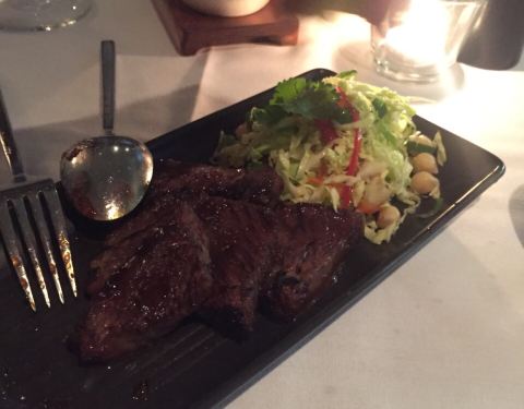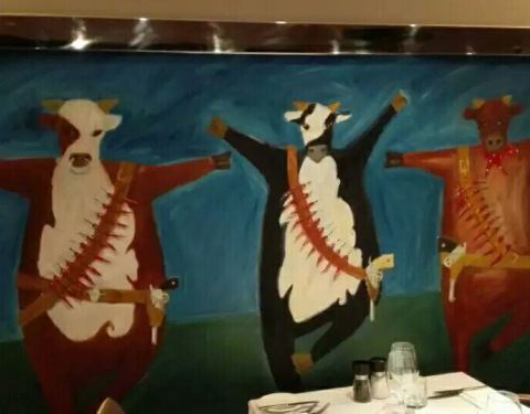 地理位置显示在CBD,其实并不是!!! 走到那里,已经是像另外一个小镇了,也算别有 一番风味。。。 打电话预定,没想到居然同一个电话2个餐 厅。。。幸好没有客满,还是给我们安排了包 房! 服务很热情,也很漂亮!牛排很正宗,三个人点 了三份,但是装在一个大盆! 菲力中规中矩,T骨超级大份!和牛很嫩,略肥! 然后最后,没吃完。。。剩下不少。。。