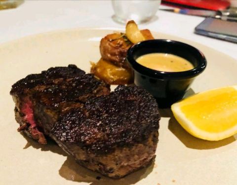 ...肉挺好吃的 点的是安格斯牛排忘了具体的 5熟 外脆里嫩很赞 服务也很好 服务员颜值很高 推荐去