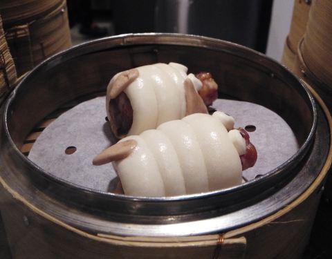 他们家的餐点最大的卖点就是它们的卖相,把传统的叉烧包,奶黄包做成了超级可爱的模样。 黄色的是奶黄流沙包,流沙包的馅料应该用的是咸蛋黄、牛油和砂糖,而且做流沙包一般不用牛油,而是用猪油,这样能呈现流沙的流质感。这个流沙包的馅做的甜而不腻,用筷子戳一个洞,捏一下,里面的奶黄流汁立刻都冒出来了,像吃小笼包吸汤一样,慢慢吸流沙汁,甜甜咸咸的,味道很赞。 叉烧包,它们家做成了小猪的样子,这粉粉嫩嫩的样子,真的让人不舍得下嘴啊!叉烧的肉选择是瘦肉,瘦而不柴,吃口很好,蜜汁很甜,空口吃可能觉得偏甜,但是配上包子面皮吃,正好能解腻。 虾饺皇,和传统的差不多,但是撒上了一些食用金粉,口感方面和普通的茶楼里没啥区别,薄薄的澄皮包裹着一整只大虾,再陪了一点肉糜,笋丁。皮薄有韧劲,虾Q弹鲜美,笋丁生脆,饺内还有少量汤汁,一口一个吃下去十分的满足感! 他们家的泡饭(忘了拍照),放了一点锅巴,所以从口感上来说会很丰富,既有软糯的米饭,又有香脆的锅巴,而且汤汁用的也是高汤,非常鲜。 价格方面,这家点真的不便宜,甚至可以说有点贵,只不过吃这些点心而已,人均将近要200了。就像前面说的,他们家吃的就是一个趣味,各种很普通的点心被做成可爱的样子,但是味道方面来说,没有特别出挑的,基本上都是中规中矩,一般香港的茶楼里都能达到的水准。所以如果你来香港,想要尝试香港传统点心的大可不必来这里,传统的茶楼就能满足你。如果你似乎传统茶楼吃腻了,想要来点新鲜的,那可以来这里尝试一下,他们家的造型真的很可爱!