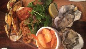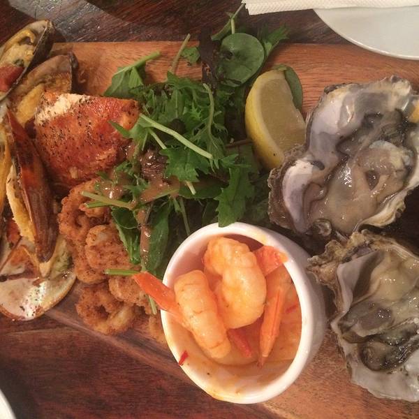 晚上大概五点半去的,人不多,晚些时候就要等位了。新西兰旅游的最后一天,在皇后大街逛,搜点评比较近就去了。点了海鲜的拼盘,里面有两个生蚝,很多青口贝,三文鱼,炸鱿鱼,虾。另外点了一打生蚝,一份羊肩肉...