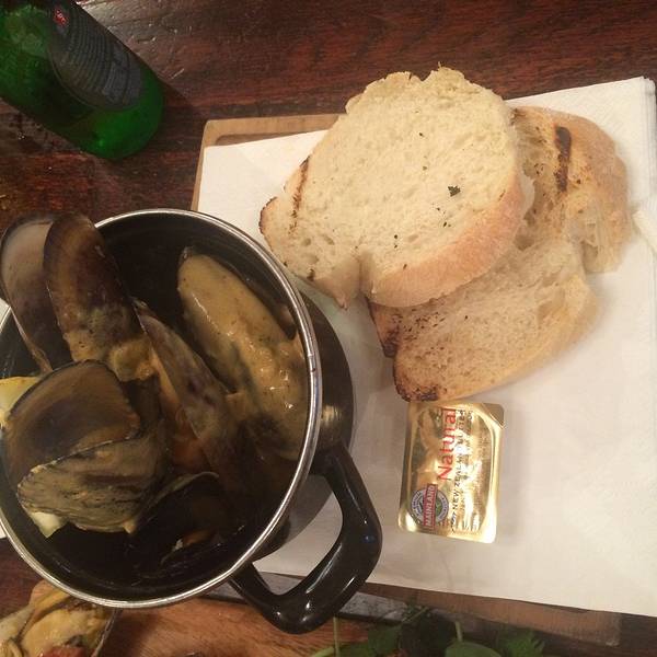 餐厅位置很好找,就在市中心;环境就是小酒馆的风格,有人喝酒聊天,有人聚会吃饭~ [服务]非常热情,两位男服务员好像是twins,很有趣,也很幽默 「烤青口贝拼盘」是推荐,但味道有点咸,个人不太喜欢…「华夫饼」味道不错,但没有那么出色 总体来说还不错