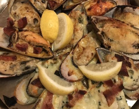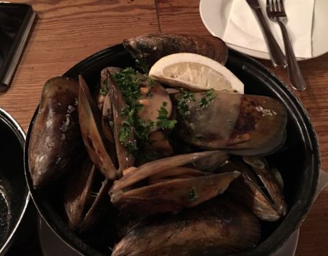 看点评去的,主打青口贝的一家海鲜西餐厅。餐厅晚上生意很好,需要排队,由于客人多,所以收拾的不算很干净。 我们点了几种不同口味的青口,有龙虾汁煮青口,烤青口拼盘,蒸海鲜拼盘等。食物的口味很不错,青口煮的也很肥嫩,尤其是烤的拼盘。