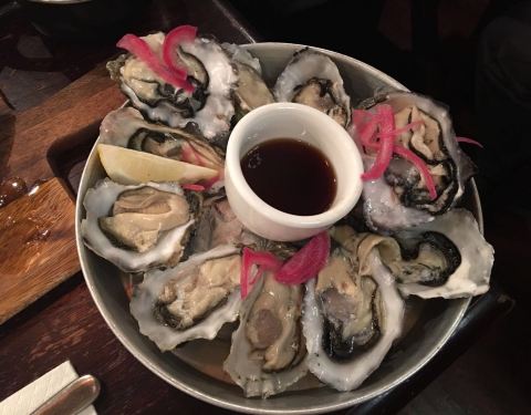 晚上大概五点半去的,人不多,晚些时候就要等位了。新西兰旅游的最后一天,在皇后大街逛,搜点评比较近就去了。点了海鲜的拼盘,里面有两个生蚝,很多青口贝,三文鱼,炸鱿鱼,虾。另外点了一打生蚝,一份羊肩肉。生蚝特别好吃,36纽币一打,比皇后镇便宜。拼盘里的东西也都好吃,青口还有很多种口味,看到旁边一桌点的一锅青口,后来知道这是店里的特色。这些东西两个女孩吃到撑。