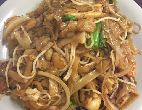 ...饭,量很足,烧鸭肥厚味美,海鲜炒牛河中的海鲜量也不少,有虾仁,鱼块,鱿鱼,青口贝等,味道很正宗