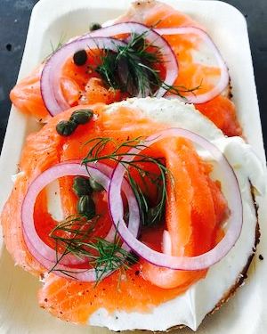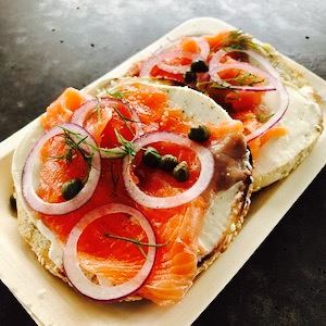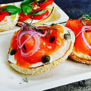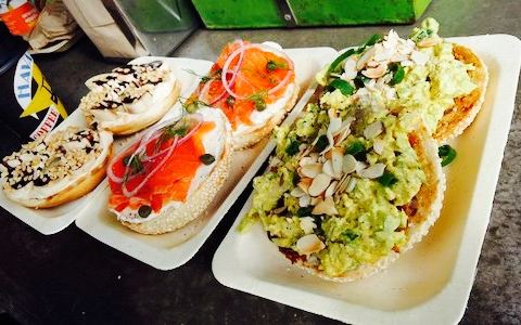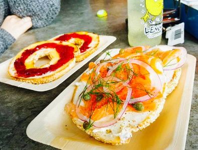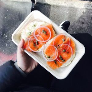 - 面包圈长得非常可爱,看起来很有食欲,吃起来也很美味。素食汉堡也很好。这里的鲑鱼很好吃,十分鲜嫩