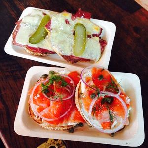 - 童子鸡和熏牛肉都腌制的十分入味,肉也很嫩,不干不柴,搭配瑞士奶酪非常完美。新鲜出炉的百吉饼很好吃