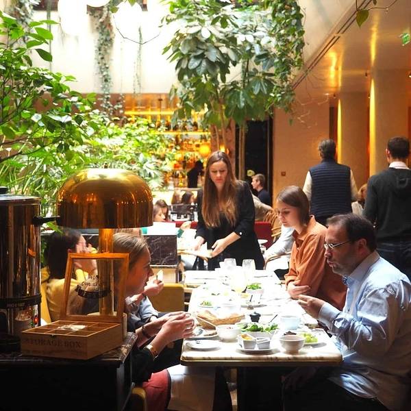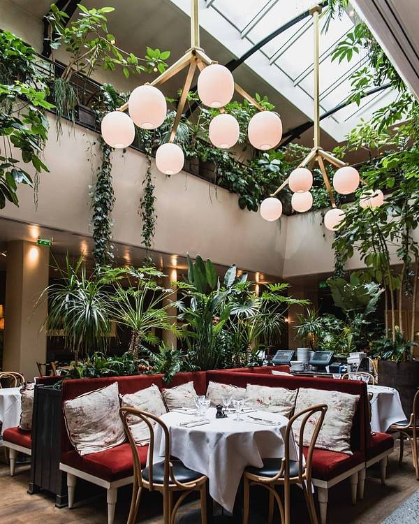 非常满意的一次用餐体验。我和女朋友都觉得很超值。来这家店,其实也是巴黎的一位朋友推荐的,女朋友作为四川的好吃嘴,当然不会错过这种巴黎的网红餐厅。到点以后,感觉用餐环境非常好,基本上都是绿色植被,像是一个内置的花园,可能是他们家的特色吧。上菜还挺快的,服务员也挺耐心的,我和女朋友的英语都不是很好,但还是帮助我们完成了点餐这些。我们前菜要了一个沙拉,主菜我选的是焗蜗牛,女朋友要了一道鸭肉。真的挺好吃的哈,领教到了法餐的魅力了。因为太赶了,所以没有来得及拍照这些,盗几张官方的图吧,给他家看一些他们家的菜色。对了,他们家还可以用支付宝哦,瞬间感觉回到了祖国,有没有哦!啥也不说了,好评!