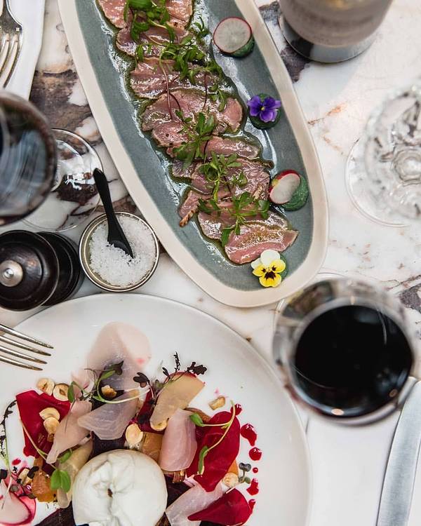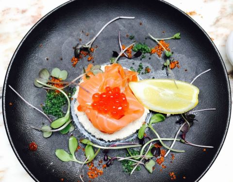 意外遇见的一家店,可以算是别有洞天。藏在闹市区,进去才发现被绿色植物覆盖(被我拍得很丑就不发了),而且一开业就热闹非凡,很火。最致命的是,便宜量大,菜超级好吃,还一人送了杯酒。导致最后根本没肚子点甜点。 的前菜配了好几种鱼子,整体都特别新鲜,而且是我第一次吃到调味不会过咸的烟熏三文鱼。有一道忘记拍的奶油浓汤,里面用了牛肝菌、鹅肝,还有一个溏心蛋,每一口都超级惊艳。主菜无论是鳕鱼、鸭肉还是牛排(忘拍了),都好吃到词穷。