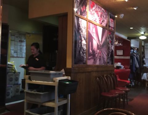 ...了,我们到了网上推荐的“成都印象”餐厅吃饭,虽说是川菜馆,但装修比较西化,有不少老外在等位吃饭