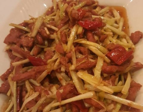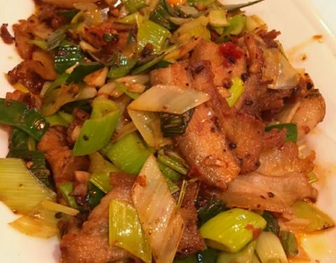 Pork belly twice cooked is basically bacon and leek. It's nice, but then when is bacon not nice.