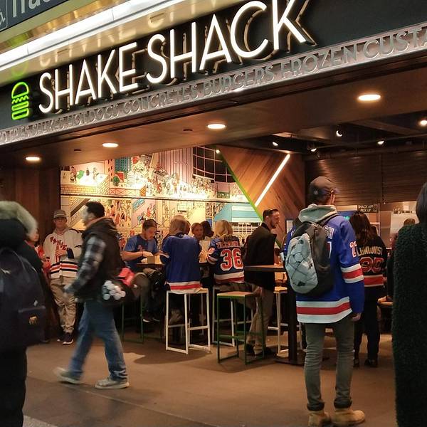 人超级多,跟KFC和金拱门一样,排队点餐,然后给你一个号牌,等汉堡好了会震动让你过去拿餐。不过,这里的汉堡肉排好好吃,推荐他们家的薯条...纽约最后一晚的晚餐,特地去尝试了当地的网红汉堡店:Shake Shack。