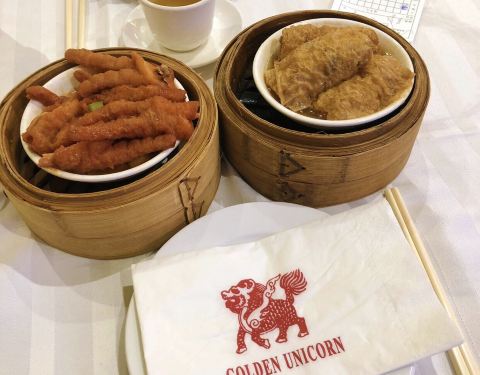 纽约麒麟金阁,享誉纽约的传统粤式茶餐厅。经理,服务员,厨师,客人都在说白话,感觉就是来到了香港喝早茶。虎皮凤爪,蒸排骨,虾饺,肠粉,荷叶鸡…种类繁多,餐厅在二楼,出电梯就是。这餐厅没有菜单,阿姨们推着不同种类的点心在餐厅里转,想吃什么直接和阿姨点,一口气点了十三个点心,吃到脖子花费不多,物美价廉,五星推荐。 马蹄糕- 金银剔透的蒸糕配上切片的杏仁 凤爪- 超级无敌好吃 最喜欢没有之一 软烂入味的凤爪 分分钟就可以骨肉分离 微微带甜 但又恰到好处 虾饺- 一个虾饺大概有四只大虾仁在里面 虾仁很新鲜 皮稍微有点厚 不然就是完美 鲜虾肠粉- 那个肠粉都是两只大大虾 可惜了 肠粉皮和虾饺一样偏厚了些 蒸排骨- 底下有三四块小南瓜软糯入味 排骨也是不错吃 上汤菜心- 清爽的菜心和着淡淡的蒜香 不过也就正常水准 奶黄包- 看在长得可爱的份上喜欢你一下嘻嘻 无功无过吧 就是普通的奶黄包而已 榴莲酥- 小伙伴说味道很不错 可惜啊我不爱榴莲 但浓重的榴莲味的确可以感觉到应该是不错