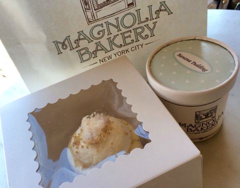 Magnolia Bakery在纽约的多家分店人气都很旺,招牌甜品曾在《欲望都市》、《穿Prada的恶魔》、《绯闻女孩》等影视剧中出现。最有名的杯子蛋糕造型可爱,糖霜颇甜;Queen B最爱的香蕉布丁入口香浓,却不甜腻,另外还有各类饮品和蛋糕可以选择。
