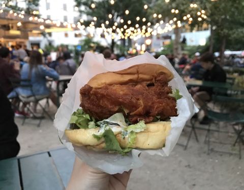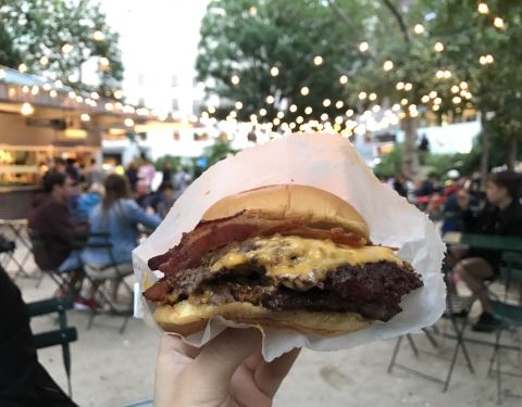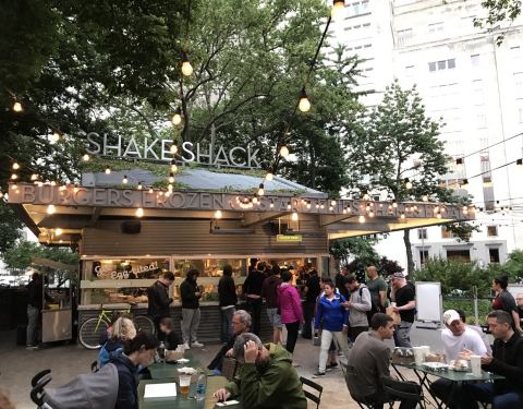 纽约自己的美式快餐连锁品牌,麦迪逊广场公园这家为旗舰店,时常会有特别活动,没有室内座位,食客都在室外座椅上就餐。炸鸡汉堡和芝士汉堡最为经典,季节奶昔时常也有很好喝的惊喜。