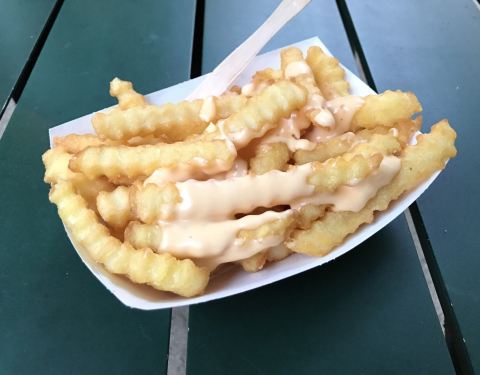 很多当地人回去吃的一家快餐店。 有个棉花糖咖啡很不错,上面的棉花糖铺了满满当当,然后我使劲在那里搅拌,估计周围人都当我外星生物呢……强迫症呀! 不过喝就免了,完全不敢尝试,只能丢给同伴了! 还有个炸肉条味道不错,来点番茄酱更好。