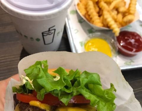 Shake shake汉堡,真的是超级知名的连锁汉堡啦,比麦当劳好吃很多的哦,所以虽然差一点点价格,但是既然到了美国,就吃这个吧