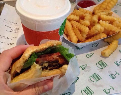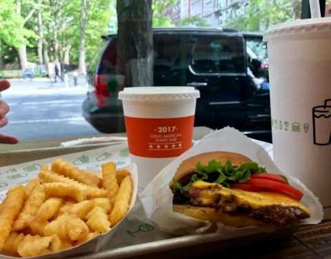 Shake Shack是连锁快餐店,每到饭点门口都会大排长龙。招牌汉堡个头不大,肉质鲜美多汁,还搭配…