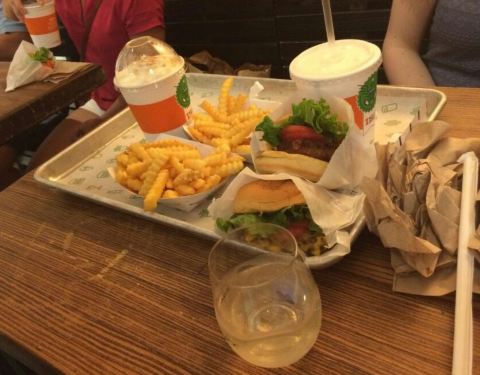 总算是吃到Shake Shack的汉堡啦!招牌牛肉堡特意选的双层,汉堡里夹着芝士、牛肉、生菜和番茄,厚实多汁的牛肉搭配融化的芝士口感超级棒。 芝士牛肉蘑菇堡就更加丰富了,完全是招牌牛肉堡和芝士蘑菇堡的双重体验...总算是吃到Shake Shack的汉堡啦!招牌牛肉堡特意选的双层,汉堡里夹着芝士、牛肉、生菜和番茄,厚实多汁的牛肉搭配融化的芝士口感超级棒。 芝士牛肉蘑菇堡就更加丰富了,完全是招牌牛肉堡和芝士蘑菇堡的双重体验,一次就可以尝到两种口味。 只有纽约才能喝到的限定奶昔粉抹豫园是由香草奶昔混合草莓酱和柚子汁,再淋上一层抹茶奶油芝士,颜色特别好看,不过我觉得很甜哦。 - It's best to order the fries "well done" so the...