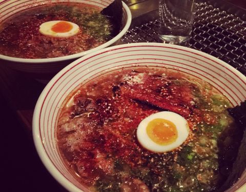 Stay out late for Takashi's beefy ramen. Beef bones are simmered for a full day, & the broth comes with braised Kobe belly, seaweed & a soft-boiled egg. You can also get it spicy for one extra dollar.Stay out late for Takashi's beefy ramen. Beef bones are simmered for a full day, & the broth comes with braised Kobe belly, seaweed & a soft-boiled egg. You can also get it spicy for one extra dollar.