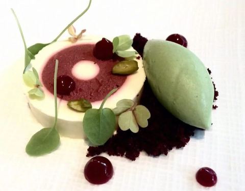 纽约米其林二星餐厅THE MODERN,可以说是艺术气息最浓的美式餐厅了,开在Museum of Modern Art 里面,餐厅的落地窗能直接看到MOMA的雕塑花园,可以一边吃饭一边欣赏艺术。如果来MOMA看梵高的《星空》,那么不要错过一楼的这家餐厅。靠窗的位置要提前在网上预定,直接walk in偶尔也会有位置,不过要看运气了。整个餐厅装修得简洁干净明亮,菜品的摆盘也是我吃的几家米其林中最精美艺术的了,每道看起来都像艺术品很有意境,让人诧异竟然可以把新美式菜摆得这么好看,这个环境和摆盘就值得一星了!第二颗星是属于甜品的,优秀,给整顿饭加分了,非常令人难忘。