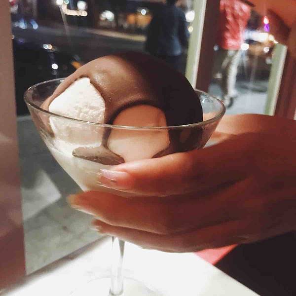 旧金山的朋友带着来的 晚上8点 还有人在排队 不过没多久就坐下了 平时的话最好预约 否则排队挺久 很出名的一家意大利餐厅 以蒜为主题 门外的橱窗里有蒜的吉祥物 店里墙上更是挂着一串串真的蒜哦 也卖各种蒜调制品 菜自然是以蒜为特色。 朋友是广东人 超爱吃海鲜 所以点的两道菜是铁板海鲜和海鲜炖[笑哭] 不过味道都非常赞 和青口贝很嫩 虾的皮已经剥掉了 一口一个爽歪歪 酱汁挺特别 很入味 份量挺足 两个妹纸两份菜就够 甜品在另外的菜单上 吃完主菜可以问服务员要 推荐吃他家独有的蒜味巧克力冰激淋啊 挺特别 两人吃光盘呀 不过晚上睡觉的时候口里还是有股蒜味的[笑哭] 妹纸悠悠的对我说 口里满是蒜味 这个时候好想找个人接吻呀 我下意识的裹紧自己的被子 问 你想找谁[懵逼] 哈哈哈哈哈 放心 不会找你啦[吐舌] 哈哈哈哈 那么以后找了男朋友 一定要带他来这里呀[机智]