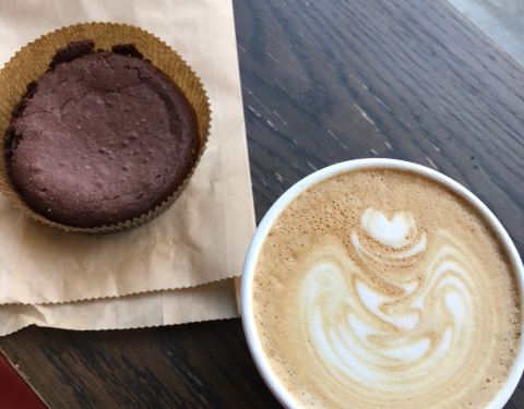 Amazing latte and yummy flourless brownies!