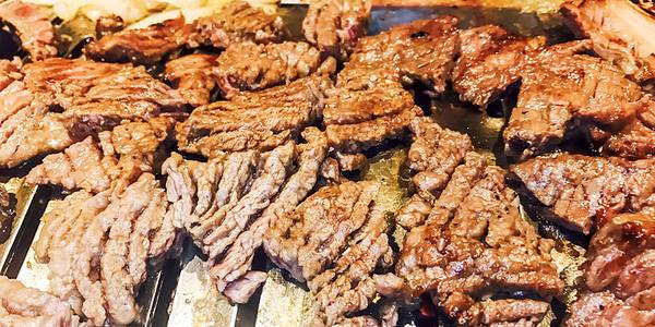 - 烤肉味道不错,不过不像国内或者韩国的那种烤肉店每个桌子都有烟道,晚上人多的时候各个炉子都是烟雾缭绕的