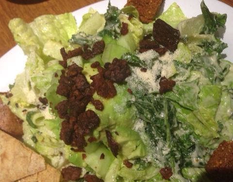 The hail kale salad is well balanced with the croutons, kale and the dressing.