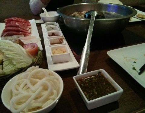 火锅~虽然不像国内的火锅选择那么多,不过好歹汤底还是挺不错,估计请了国内的师傅调制的,另外蘸料的选择挺多,可以调的很丰富的味觉,吃起来不错