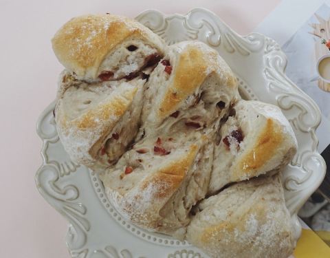 一心想要南瓜面包,等了半个多小时终于盼到它出炉。金灿灿的南瓜面包非常柔软,南瓜馅湿润绵密,甜度不高。 元气紫米包也属于比较清淡纯粹的,小小一只馅料却很足。面包上撒了些黑芝麻,吃起来很香。 法式修酪里夹着不少核桃仁和蔓越莓,整体比较中规中矩,不那么出彩。
