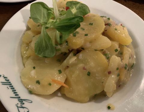 听说奥地利皇帝FRANZ最爱的食物是炸猪排,故它也成为了奥地利的国菜。这家以猪排而闻名的饭店倒是真的热门,饭点时门口等了半小时,相比魔都网红饭馆的等待时间已经是很满意了。猪排一份比手掌还大,两个女生可以...听说奥地利皇帝FRANZ最爱的食物是炸猪排,故它也成为了奥地利的国菜。这家以猪排而闻名的饭店倒是真的热门,饭点时门口等了半小时,相比魔都网红饭馆的等待时间已经是很满意了。猪排一份比手掌还大,两个女生可以share一下,配上柠檬汁,猪肉入口酸酸脆脆别有风味,但感觉黄牌辣酱油才跟猪排绝配,可惜了欧洲人没有这种神物!其他菜式诸如色拉,汤也就不过如此。