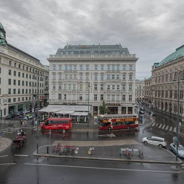 在国家歌剧院的对面有一家很著名的咖啡馆-沙赫咖啡,但看门口那个队伍..没一个小时估计有点危险,所以我们转道去往对面没有在排队的——莫扎特咖啡馆(1794年,为纪念莫扎特去世而成立),其实在维也纳,百年历史的咖啡厅并不罕见,也许你不经意间走进的一家咖啡店都是那些音乐大咖们光顾过的地方。对于吃饭点单来说,英语不好的我们确实困难,所幸没有点到太雷人的东西,一杯热巧克力,两杯莫扎特咖啡,一杯黑咖,维也纳猪排来一份,沙赫蛋糕以及苹果派各来一个,最后点上了爽口的土豆沙拉。这样一顿餐食,总消费是70.5欧(其中包括了10%的小费)沙赫蛋糕: 其实是隔壁沙赫咖啡馆的名产,但因为没吃成嘛,所以就特别想点。 沙赫蛋糕从外观来说和其他蛋糕对比那真是丑的可以,简单的一个三角形加上一坨鲜奶油的点缀,再没有其他装饰了。 口感来说,还是很多层次的,并不是表面上简单的巧克力蛋糕而已,表面的巧克力是硬的,而蛋糕本身确松软,底盘应该还配有薄层饼干,边上的一佐无糖鲜奶也是配的恰到好处。莫扎特咖啡:咖啡部分我是点了招牌莫扎特咖啡,怕甜腻的那位小伙伴点了应该是清卡,她的咖啡杯也是特别的可以。 莫扎特咖啡我还是非常推荐的,它是在Double Espresso上加鲜奶油,以及一小罐牛奶巧克力烈性酒Mozart Liqueur(莫扎特酒),整杯蔓延的是浓郁的酒香、巧克力香、咖啡香和奶香,四种味道冲撞在一起,非常浓郁,但一点都不甜腻。苹果派:如果不爱吃太甜的朋友,可以点一份苹果派,味道酸甜,带着苹果的清香,顶层那些脆皮,酥酥脆脆的,配着夹层绵软的苹果颗粒,嚼起来口感丰富,也很有味道。维也纳炸猪排:维也纳人爱这道菜,貌似是他们的国菜,以至于第一天我们强烈的想吃,后面总会因为英语不好,而误点到这类的炸大排头疼不已。 维也纳炸猪排最经典的吃法是挤上鲜柠檬汁配果酱吃,口感个人到不是很喜欢,甜甜咸咸的有点突兀。当然...这家的炸猪排味道也一般般了,不推荐。土豆沙拉:应该没人会猜到,这份土豆沙拉才是我们吃的精光的食物,因为在一堆甜品和油炸食物的对比下,它真的显得味鲜色美又清凉爽口,可能也是因为它是唯一一样纯粹的“咸味”食物吧。如果有人也到这家吃饭,这盘我是强烈推荐的!这边简单的说下小费问题,在维也纳吃的几顿,买单的时候,服务员都问我们要给多少小费...这问题真的很尴尬,说实话吧..并没有哪家餐厅给我们特殊服务过,那么我们仔细看了小票应该都是没包括服务费的,其实他们完全可以按自己的标准收服务费嘛..可现在换个方式问你要小费,你说我们能不给吗?那肯定不行啊~那么给多少呢?通常我们是给餐费的10%。这个问题放到朋友圈,居然还真有人回复我是不给的。 所幸这个要小费的问题离开维也纳后就再也没碰到过了。 最后..阳光那么好,一杯敬朝阳 一杯敬月光。不然就上个自拍的四人合影吧,真的感谢前面两位贡献了“大脸”来衬托我们了。 顺便.给你们看看,我们这些土游客就是穿的这样去看歌剧的
