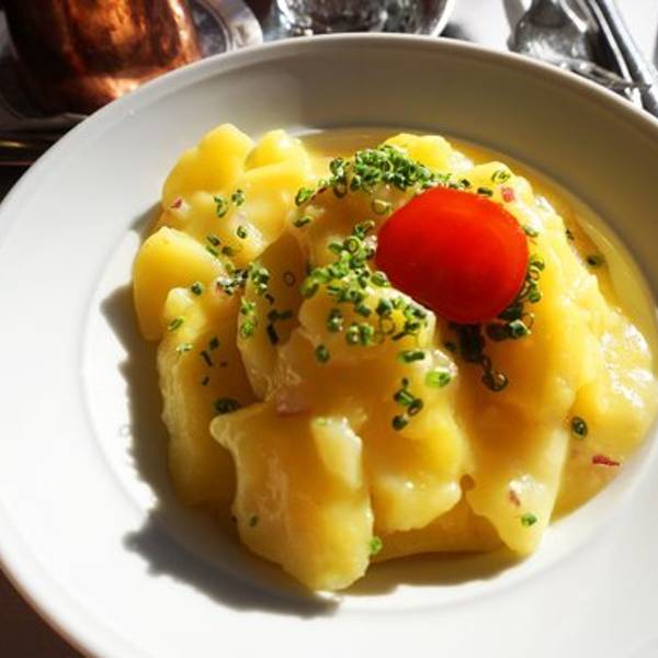 维也纳炸猪排最经典的吃法是挤上鲜柠檬汁配果酱吃,口感个人到不是很喜欢,甜甜咸咸的有点突兀。当然...这家的炸猪排味道也一般般了,不推荐。土豆沙拉:应该没人会猜到,这份土豆沙拉才是我们吃的精光的食物,因为在一堆甜品和油炸食物的对比下,它真的显得味鲜色美又清凉爽口,可能也是因为它是唯一一样纯粹的“咸味”食物吧。如果有人也到这家吃饭,这盘我是强烈推荐的!这边简单的说下小费问题,在维也纳吃的几顿,买单的时候,服务员都问我们要给多少小费...这问题真的很尴尬,说实话吧..并没有哪家餐厅给我们特殊服务过,那么我们仔细看了小票应该都是没包括服务费的,其实他们完全可以按自己的标准收服务费嘛..可现在换个方式问你要小费,你说我们能不给吗?那肯定不行啊~那么给多少呢?通常我们是给餐费的10%。这个问题放到朋友圈,居然还真有人回复我是不给的。