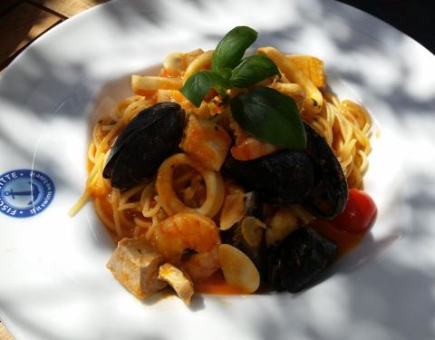 一定会再来的。美味可口的海鲜意大利面和鲑鱼排。我确认这是在慕尼黑吃饭的正确选择。我们在下午2点左右的高峰时间也能找到一张桌子。海鲜的味道和新鲜度是我们进餐馆的最大动力。我们因为大量的海味而被吸引住了...