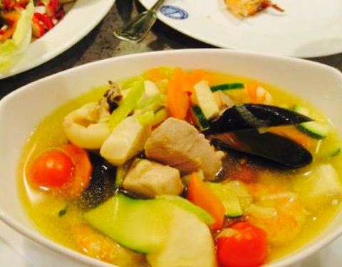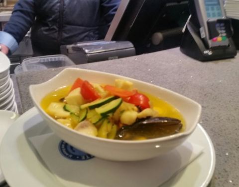 我一定要向大家强烈推荐这家餐厅。餐厅里有许多桌子。很快就可以吃午饭了。我们在在一个小的包间点了一份鱼汤和一个巨大的碗贻贝,并且配上一瓶上好的葡萄酒。喜欢这家餐厅。