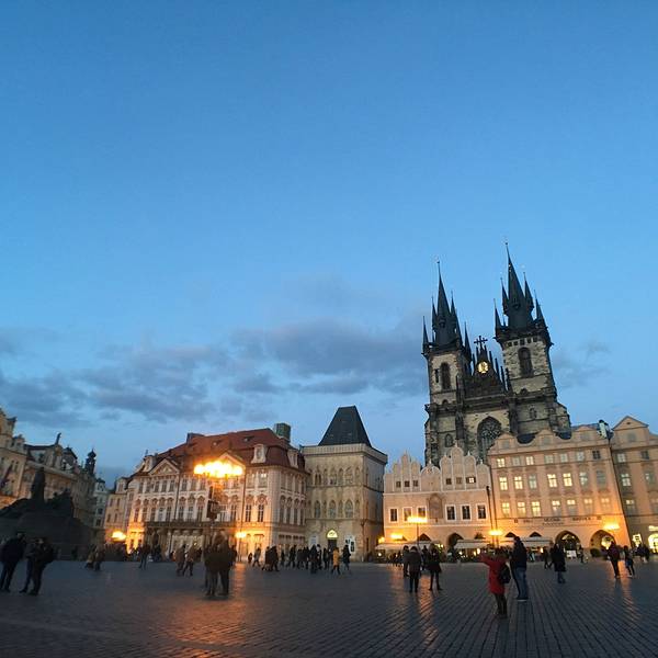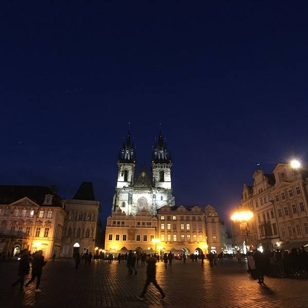 吃饱出来已经天黑了。经过布拉格广场,看到了广场的夜景。