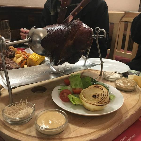 攻略上很多人推荐的一家特色餐厅。主要特色就是大猪肘!!!!确实非!常!大!啤酒超好喝!!不知道猪肘那么大,还点了那么多肉,撑到扶墙走!!