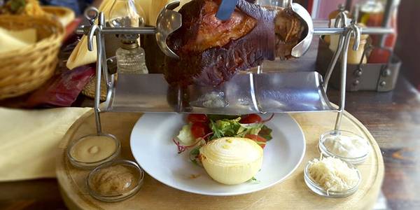 布拉格老城区著名的一家网红店。门口有一只烤乳猪一直在烤,引来无数人围观。据说这里到了饭点就要等很久,所以我们那天下午4点多就到了。价格不贵,一只好大的猪蹄胖才500多克朗,不是油炸食的,所以最大限度保...布拉格老城区著名的一家网红店。门口有一只烤乳猪一直在烤,引来无数人围观。据说这里到了饭点就要等很久,所以我们那天下午4点多就到了。价格不贵,一只好大的猪蹄胖才500多克朗,不是油炸食的,所以最大限度保持了食材的原汁原味,的确是要趁热吃。啤酒和色拉也不错。最后结帐没出现服务费和小费的问题。