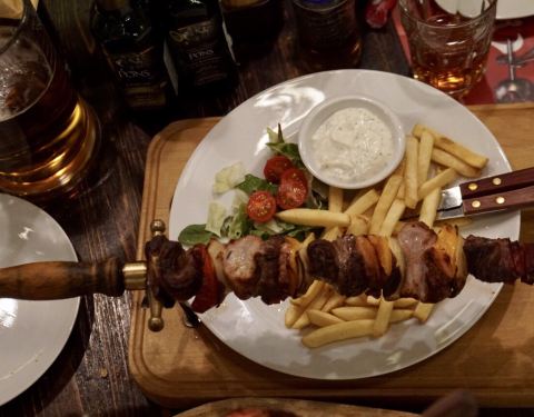 位于布拉格老城广场附近的传统捷克美食,餐厅烹制着地道的捷克美食各式炖肉、黑啤和香料熏烤猪肘、查理四世的剑肉串、烤农场熏香肠…,并在传统配菜之外独具匠心地提供意大利面或香浓土豆泥等,咸香调味恰到好处...位于布拉格老城广场附近的传统捷克美食,餐厅烹制着地道的捷克美食各式炖肉、黑啤和香料熏烤猪肘、查理四世的剑肉串、烤农场熏香肠…,并在传统配菜之外独具匠心地提供意大利面或香浓土豆泥等,咸香调味恰到好处,肉质鲜嫩,熟度合适,最主要的是菜量很实惠。如果你有肚量和足够的勇气还可以来参加“一公斤牛排免费吃”的挑战。 另外,用餐结束后,服务员会赠送每人一杯蜂蜜酒,酒精度不高,女士也可以喝,这是当地特色酒,必尝。