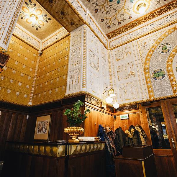 地址:Na Poříčí 15, 110 00 Praha 1,电话:+420 246 011 440咖啡馆内最大的特点当属雕刻有动植物的 马赛 克砖和拼砖画、金碧辉煌的灯饰,显示了帝国咖啡馆的不凡气质。当然,比起 布达佩斯 那间金碧辉煌的 纽约 咖啡厅来说,还是逊色不少。这家咖啡馆曾被评选为 欧洲 十大美丽咖啡馆之一(据说排名第4),装潢的非常漂亮,咖啡的味道也非常的香醇。关键是价格还相对实惠,平均200克朗,在 欧洲 是相当难得了。