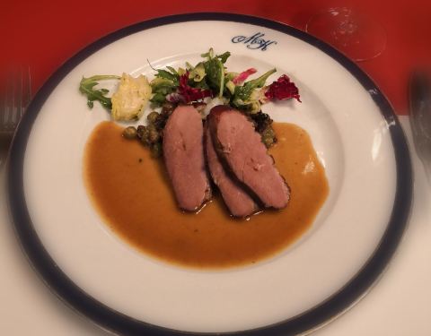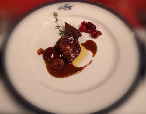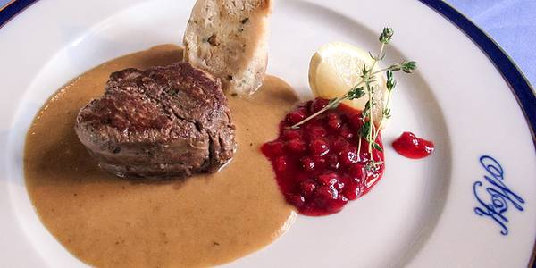 Filet mignon with vegetable cream sauce, Carlsbad dumplings and cranberries